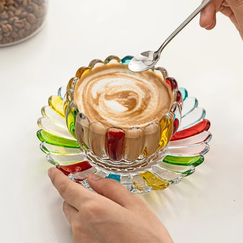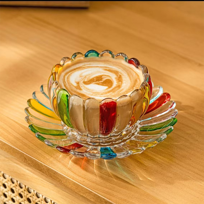 Tredimensjonalt floral teksturdesign. Både koppen og fatet har en tydelig definert tredimensjonal, konveks kronbladtekstur, mens den brede munnen forbedrer den generelle estetikken og gir en sklisikker overflate.
