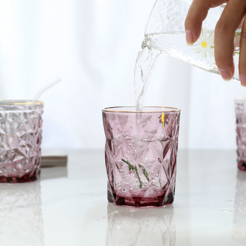 Det gjennomsiktige glasset har en hamret tekstur som gjør at folk ikke kan unngå å ta på det igjen og igjen. Ser du på det fra forskjellige vinkler, kan du også sette pris på de forskjellige teksturene og gnistre i sollys. Munnen på koppen er en sirkel av gylne linjer, som er enkel, men samtidig luksuriøs, og gir den en lett og luksuriøs motefølelse. Koppen som helhet tar i bruk hammerteknologi, som har en utmerket håndfølelse og er også effektiv for å forhindre sklir. Munnen på koppen er også polert, har ingen grader, er glatt og passer til leppenes form. Bunnen av koppen er tykkere for å øke friksjonen og forhindre at koppen velter, slik at du kan bruke den med ro i sinnet. Alle koppene er designet med en stor åpning for enkel rekkevidde og rengjøring. Samtidig vil ikke koppen absorbere smaker og vil ikke beholde lukten fra forrige gang den ble fylt. INTOWALK Kinas kildeglassprodusent