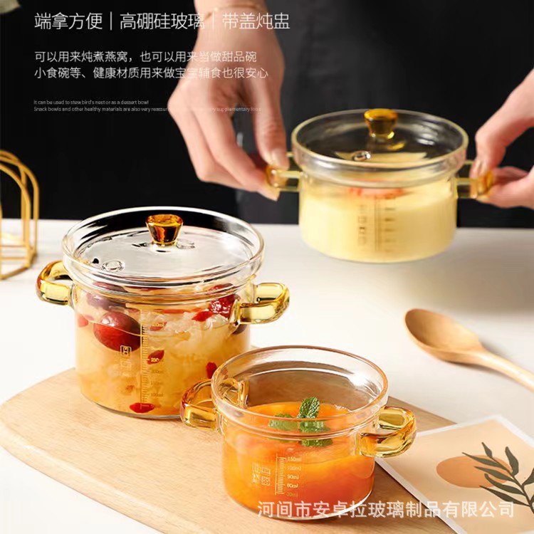 Den dobbeltørede grytegryten i glass er lett å bære og har lokk. Den kan brukes til å stuve fuglereder eller som nudelgryte. Den er laget av sunne materialer og er trygg å bruke som barnemat. Den kan dampes, bakes og mikrobølgeovn. Deilig mat er tilgjengelig online umiddelbart. INTOWALK kjøkkenprodukter er vakre og praktiske, enkle, men ikke enkle, og kan forbedre atmosfæren i restauranten din.