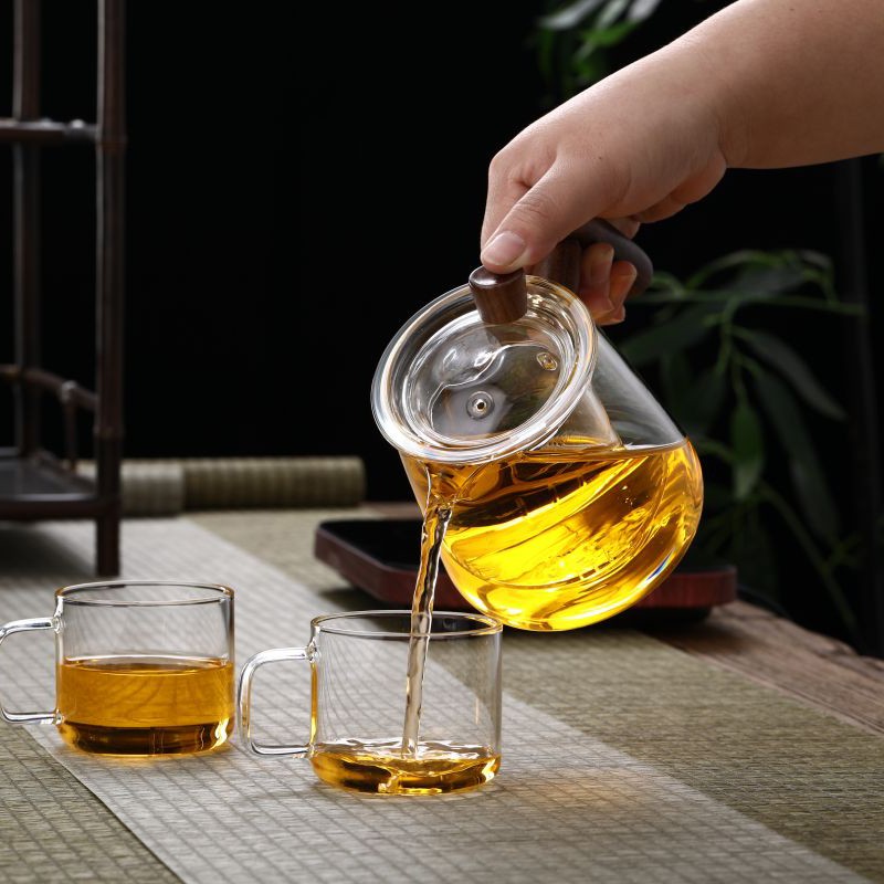 Det doble tesettet i glass lar deg se skjønnheten i te med et blikk. Det gjennomsiktige materialet viser fargen, formen og strekkdansen til teblader. Hver gang boblene koker og duften av te sprer seg sakte, presenterer den et nydelig stadium i glassgryten. Dette er en eksklusiv og elegant kanne med te, som lar deg nyte te samtidig som den tilfører en kunstnerisk atmosfære til rommet ditt. Den enkle utformingen av glasskannen lar deg nyte dansen av teblader i vannet, som om du er i en visuell fest. Sammenlignet med tradisjonelle tekanner, er den mer moderne og fasjonabel, og har blitt et landskap av hjemmedekorasjon. INTOWALK glass hjemmeprodukter e-handelsplattform forsyningskjede