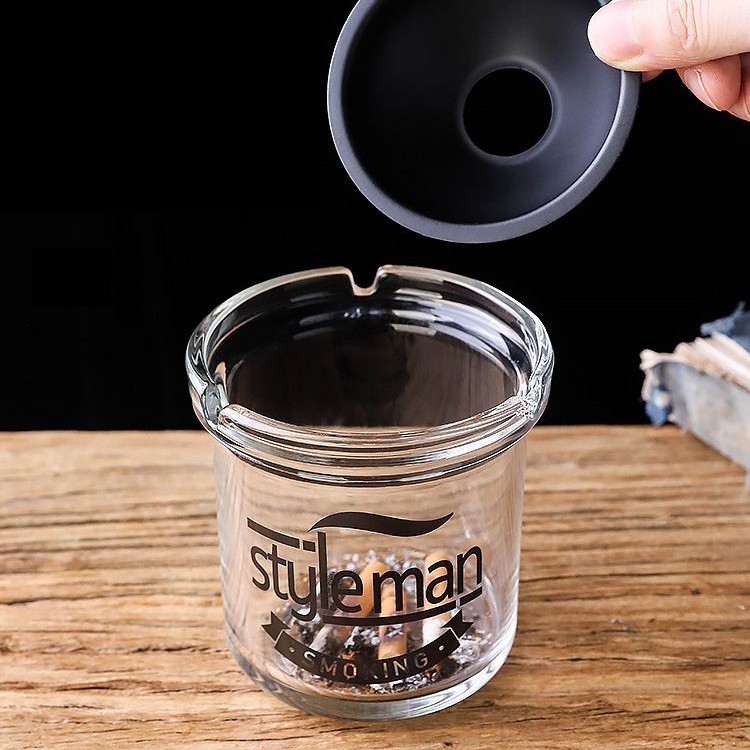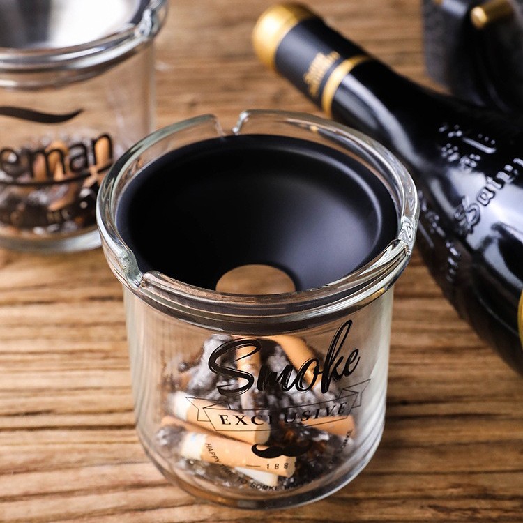 detalj: Rustfri ståltrakt, slukker røyk og forhindrer flygende aske, isolerer og støtter forbrenning, slukker automatisk sigarettsneiper og eliminerer sikkerhetsfarer Kortspordesign for enkel sigarettfrigjøring og passende størrelse for å forhindre at sigaretter ruller Humanisert design, vindtett og dekket for å hindre aske i å fly rundt, noe som sikrer et rent skrivebord Kreative mønstre støtter tilpasning. Du er velkommen til å gi mønstre og be oss behandle dette glassaskebegeret.
