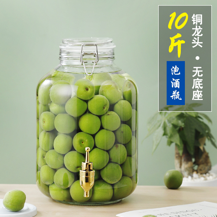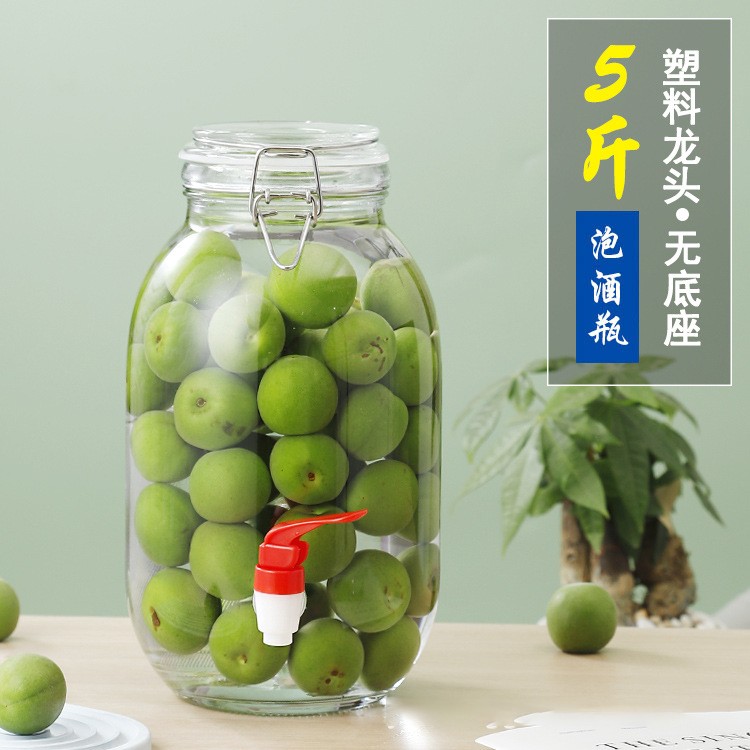 Fortykket glass, grønn plommevinkrukke, 304-kranen i rustfritt stål kan løsnes fra glasset, noe som også er praktisk for deg å montere, og armaturen i rustfritt stål er ikke lett å ruste, ødelegge eller lekke.