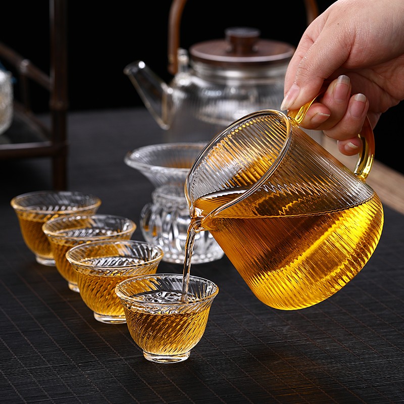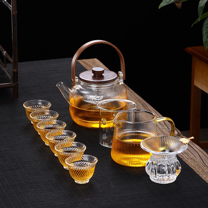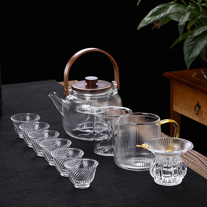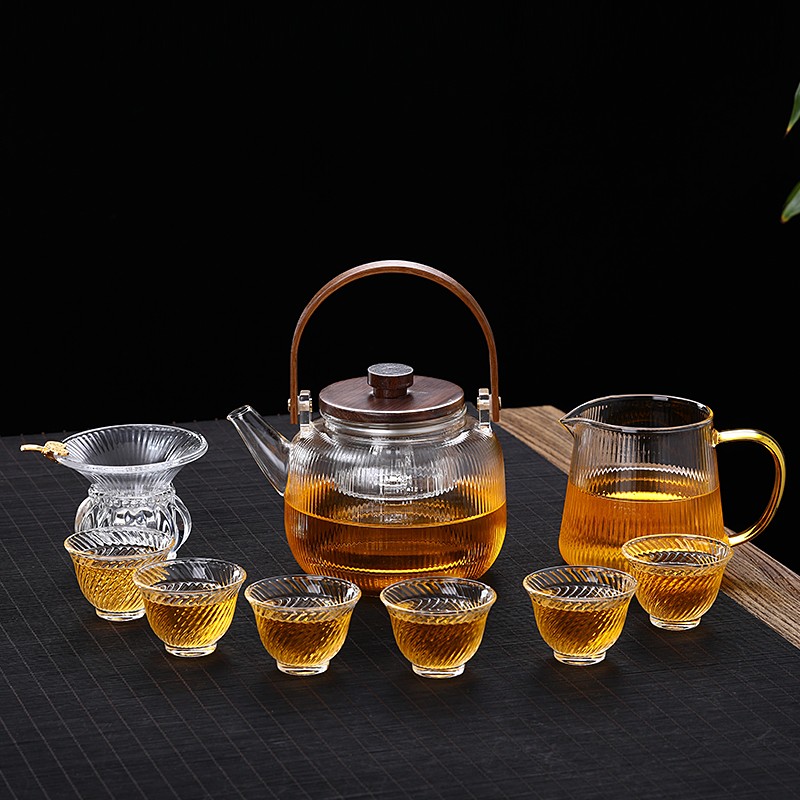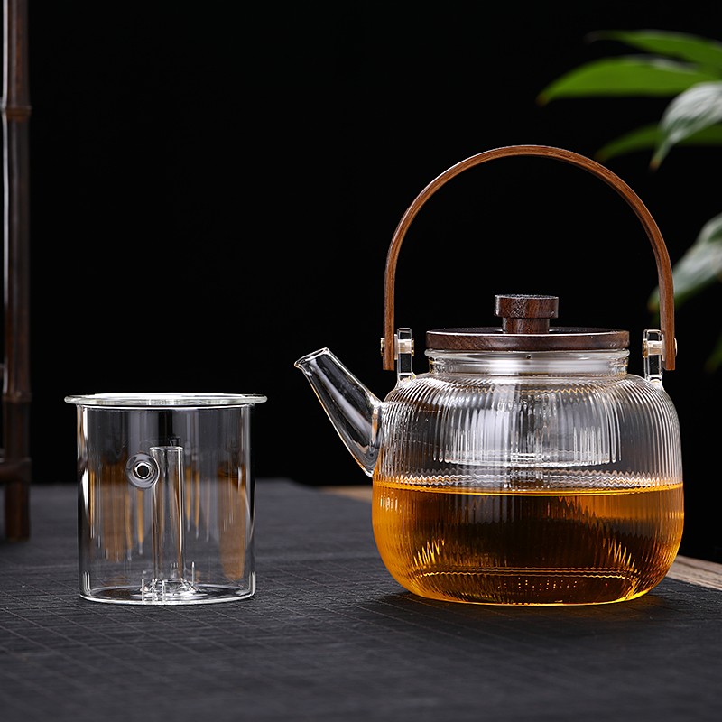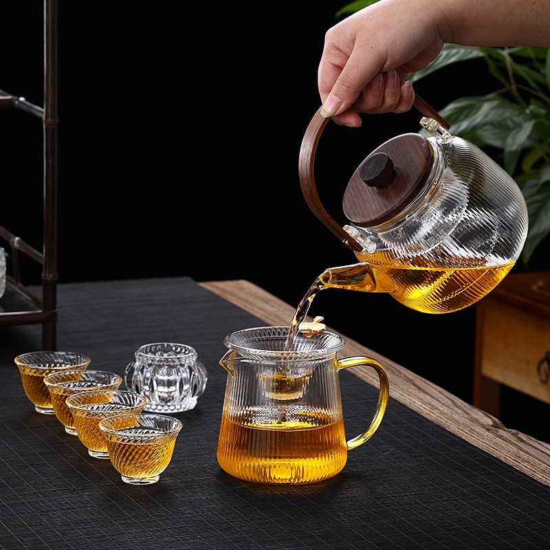 Tesettet i vertikalt mønster har en tradisjonell designstil, og vannet er jevnt som en søyle, og vannkvaliteten er ren og skarp. Trehåndtaksdesignen til den håndlagde glasstekannen samsvarer med menneskelig håndkontakt og er behagelig å bruke. Håndtaket er sømløst koblet til glasskroppen, og forhindrer effektivt brannskader og glidning. Teavløpet som følger med kjelen er laserkuttet for å la teen flyte raskt og jevnt. Filtrerer effektivt terester og teskum for å forsterke smaken av drinker. Tekannestripene har en enkel og brukervennlig design og er laget av borosilikatmateriale av høy kvalitet. Denne håndlagde glasstekannen passer for de fleste bryggede drikker, som urtete, svart te, grønn te, helsete og mange andre kategorier. Den kan også brukes til å brygge kaffe og melk, noe som gjør livet ditt enklere. INTOWALK Kinas kildeglassprodusent!